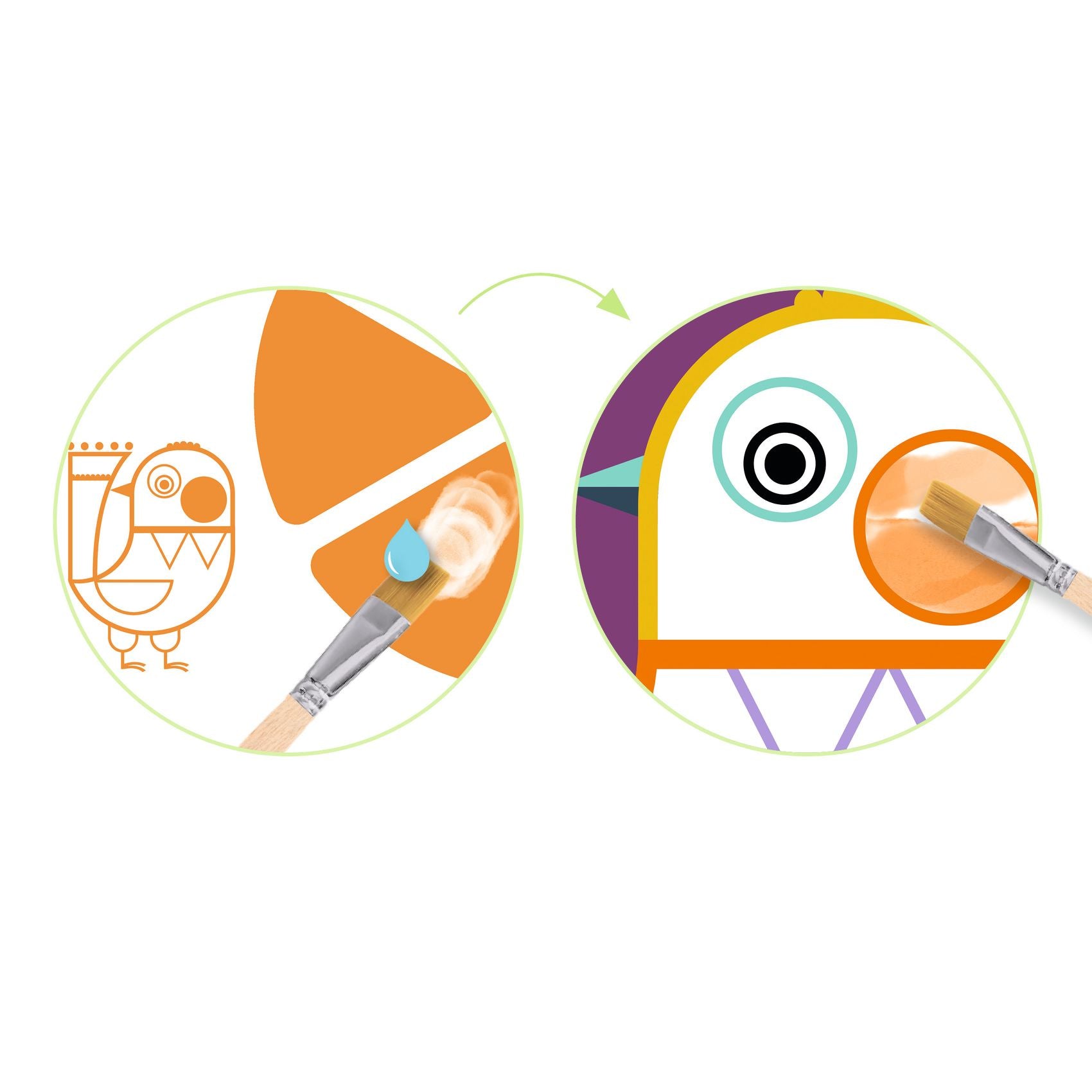 Little artists can discover paint in a fun and age-appropriate way. With palettes printed directly onto the sheets, they can paint ‘like grown-ups’, without the need for cumbersome or messy equipment. Everything has been thought out to provide children with a fun and practical activity that will build their confidence!